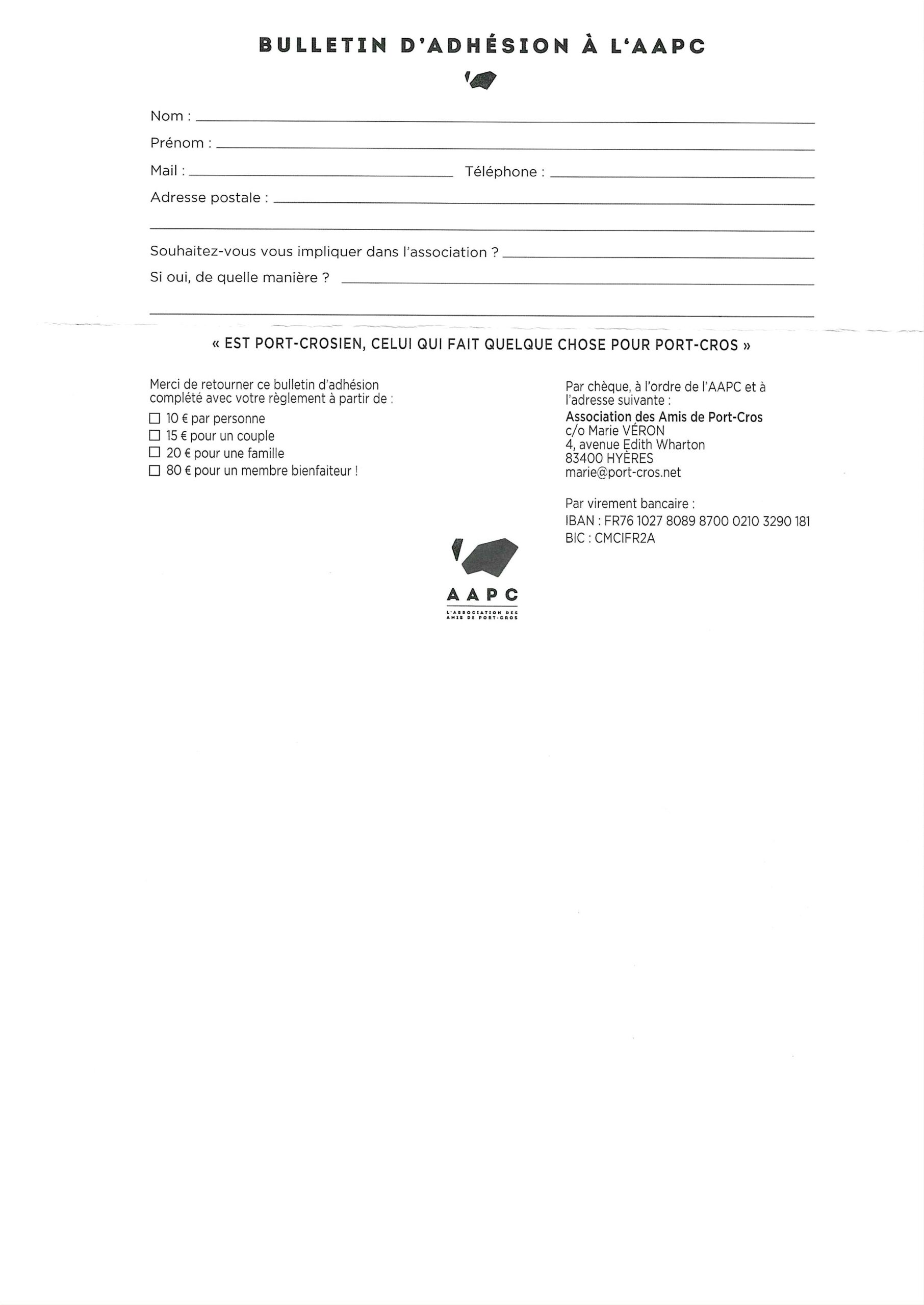Merci à tous ceux qui ont spontanément réglé leur cotisation pour l’année 2026 ! Merci aux autres de renouveler leur effort de soutien, car nous en avons besoin pour inviter des écrivains et organiser des manifestations sur l’île. Nous vous rappelons la possibilité d’un règlement sécurisé, grâce à la plateforme solidaire HelloAsso, ou encore utiliser le bulletin d’adhésion ci-joint. Tous ces documents liés à l’Assemblée ainsi que l’adhésion à notre association sont en ligne sur le site www.port-cros.net.